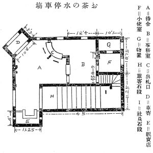 当時のお茶の水橋には鉄道が接続していなかったが、1904(明治37)年12月には甲武鉄道市街線の御茶ノ水駅が南橋詰の西側に開業し、翌年より東京電気鉄道の電車がお茶の水橋の併用軌道を渡って東竹町(順天堂前)へと線路を伸ばした。