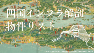 四国インフラ解剖 物件リスト google mapで見る 四国インフラ001 小鳴門橋・大鳴門橋 四国インフラ002 遍路道 四国インフラ003 吉野川に架かる橋梁群 四国インフラ004 徳島 四国インフラ005 ひょうたん島と川ネットワーク 四国インフラ006 眉山 四国インフラ007 徳島市水道局佐古配水場 四国インフラ008 第十堰・第十樋門 四国インフラ009 吉野川 四国インフラ010 徳島・小松島港 四国インフラ011 神山・上勝・佐那河内 四国インフラ012 府能隧道 四国インフラ013 石積み・棚田1:生活の場を築く石積み 四国インフラ014 大谷川砂防堰堤 四国インフラ015 うだつの町並み 四国インフラ016 石積み・棚田2:谷戸における生活の場 四国インフラ017 土釜橋 四国インフラ018 坪尻駅・新改駅 四国インフラ019 美波の町並み 四国インフラ020 那賀川 四国インフラ021 長安口ダム 四国インフラ022 木頭の林業土木遺産と吊橋群 四国インフラ023 祖谷 四国インフラ024 魚梁瀬森林鉄道 四国インフラ025 牧野植物園 四国インフラ026 JR高知駅 四国インフラ027 土佐電 四国インフラ028 はりまや橋 四国インフラ029 高知城 四国インフラ030 浦戸湾 四国インフラ031 仁淀川 四国インフラ032 久礼港 四国インフラ033 純平・八千代タワー 四国インフラ034 石積み・棚田3:山地における生活の場 四国インフラ035 旧大正林道 四国インフラ036 四万十川 四国インフラ037 沈下橋 四国インフラ038 麻生堰 四国インフラ039 土佐くろしお中村駅 四国インフラ040 中筋川ダム 四国インフラ041 宿毛河戸堰 四国インフラ042 石積み・棚田4:海岸沿いの耕作地 四国インフラ043 柿原水源地水道施設群 四国インフラ044 三瓶隧道 四国インフラ045 明治橋 四国インフラ046 佐田岬半島の石垣群 四国インフラ047 日土小学校 四国インフラ048 肱川 四国インフラ049 臥龍山荘 四国インフラ050 内子 四国インフラ051 屋根付橋 四国インフラ052 長浜大橋 四国インフラ053 重信川 四国インフラ054 石手川橋梁 四国インフラ055 伊予鉄道 四国インフラ056 花園町通り 四国インフラ057 松山城公園 四国インフラ058 大街道・銀天街 四国インフラ059 湯築城公園 四国インフラ060 道後温泉広場 四国インフラ061 三津浜港・三津の渡し 四国インフラ062 芸予要塞小島砲台跡 四国インフラ063 今治城・吹揚公園 四国インフラ064 西瀬戸自動車道 四国インフラ065 多島海 四国インフラ066 石鎚山 四国インフラ067 大宮橋 四国インフラ068 新居浜 四国インフラ069 別子銅山 四国インフラ070 四国山地中央構造線 四国インフラ071 豊稔池堰堤 四国インフラ072 早明浦ダム・香川用水・溜池 四国インフラ073 詫間海軍航空隊滑走台 四国インフラ074 善通寺駅舎 四国インフラ075 琴平 四国インフラ076 満濃池・満濃池樋門 四国インフラ077 丸亀城・丸亀港 四国インフラ078 坂出人工土地 四国インフラ079 坂出港 四国インフラ080 瀬戸大橋 四国インフラ081 新川橋梁・長尾線 四国インフラ082 栗林公園 四国インフラ083 ことでん 四国インフラ084 高松 四国インフラ085 高松駅・高松港 四国インフラ086 男木島灯台 四国インフラ087 唐櫃岡清水共同水場 四国インフラ088 内海ダム 構造別 橋梁 撮影:大村拓也 四国インフラ001 小鳴門橋・大鳴門橋 四国インフラ003 吉野川に架かる橋梁群 四国インフラ017 土釜橋 四国インフラ022 木頭の林業土木遺産と吊橋群 四国インフラ037 沈下橋 四国インフラ045 明治橋 四国インフラ051 屋根付橋 四国インフラ052 長浜大橋 四国インフラ054 石手川橋梁 四国インフラ064 西瀬戸自動車道 四国インフラ067 大宮橋 四国インフラ080 瀬戸大橋 四国インフラ081 新川橋梁・長尾線 道路 撮影:片岡由香 四国インフラ002 遍路道 四国インフラ012 府能隧道 四国インフラ044 三瓶隧道 四国インフラ056 花園町通り 鉄道・駅 撮影:大村拓也 四国インフラ018 坪尻駅・新改駅 四国インフラ024 魚梁瀬森林鉄道 四国インフラ026 JR高知駅 四国インフラ027 土佐電 四国インフラ035 旧大正林道 四国インフラ039 土佐くろしお中村駅 四国インフラ055 伊予鉄道 四国インフラ074 善通寺駅舎 四国インフラ083 ことでん 河川・濠・水門 撮影:大村拓也 四国インフラ005 ひょうたん島と川ネットワーク 四国インフラ008 第十堰・第十樋門 四国インフラ009 吉野川 四国インフラ020 那賀川 四国インフラ031 仁淀川 四国インフラ036 四万十川 四国インフラ048 肱川 四国インフラ053 重信川 ダム・堰堤 撮影:大村拓也 四国インフラ014 大谷川砂防堰堤 四国インフラ021 長安口ダム 四国インフラ038 麻生堰 四国インフラ040 中筋川ダム 四国インフラ041 宿毛河戸堰 四国インフラ071 豊稔池堰堤 四国インフラ072 早明浦ダム・香川用水・溜池 四国インフラ076 満濃池・満濃池樋門 四国インフラ088 内海ダム 上・下水道 撮影:大村拓也 四国インフラ007 徳島市水道局佐古配水場 四国インフラ043 柿原水源地水道施設群 四国インフラ087 唐櫃岡清水共同水場 公園 撮影:大村拓也 四国インフラ006 眉山 四国インフラ025 牧野植物園 四国インフラ029 高知城 四国インフラ049 臥龍山荘 四国インフラ057 松山城公園 四国インフラ059 湯築城公園 四国インフ